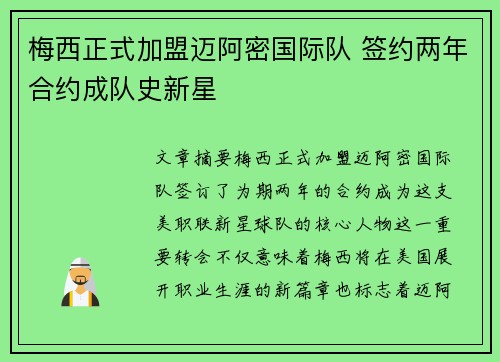 文章摘要:梅西正式加盟迈阿密国际队,签订...
