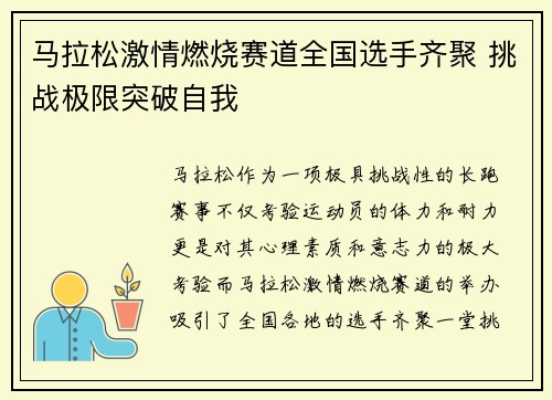 马拉松作为一项极具挑战性的长跑赛事,不仅...