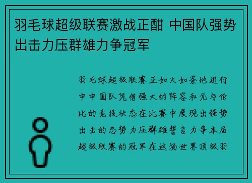 羽毛球超级联赛正如火如荼地进行中,中国队...