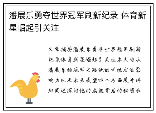 文章摘要:潘展乐勇夺世界冠军刷新纪录,体...