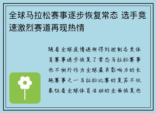 随着全球疫情逐渐得到控制,各类体育赛事逐...
