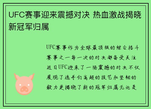 UFC赛事作为全球最顶级的综合格斗赛事之...