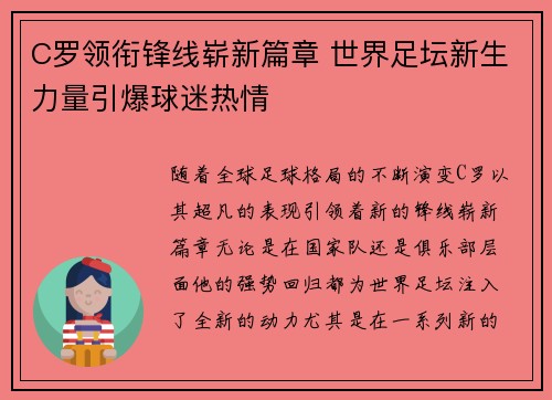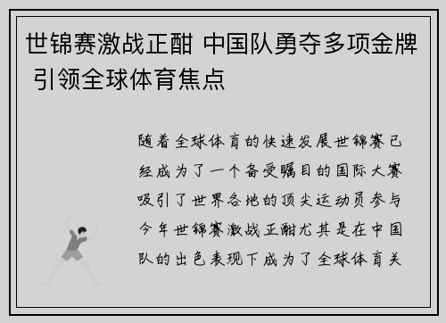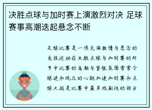 足球比赛是一项充满激情与悬念的竞技运动,...