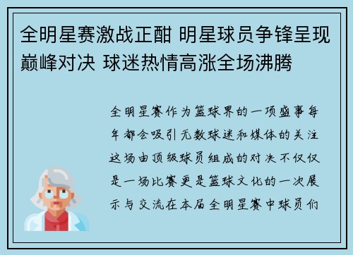 全明星赛作为篮球界的一项盛事,每年都会吸...