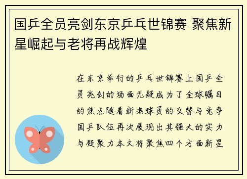 在东京举行的乒乓世锦赛上,国乒全员亮剑的...
