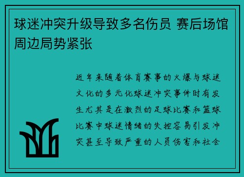 近年来,球迷冲突引发暴力事件的情况越来越...