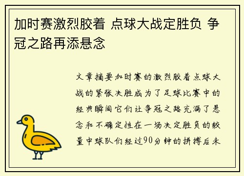 文章摘要:加时赛的激烈胶着、点球大战的紧...