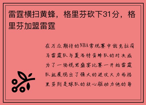 在万众期待的NBA常规赛中,俄克拉荷马雷...