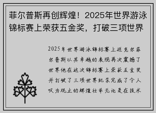 2025年世界游泳锦标赛上,迈克尔·菲尔...