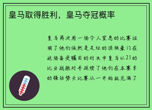 皇马再次用一场令人窒息的比赛证明了他们依...