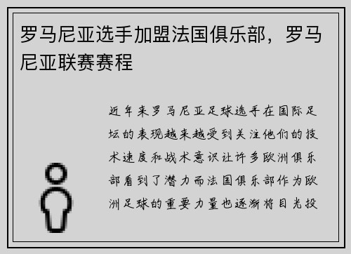 近年来,罗马尼亚足球选手在国际足坛的表现...