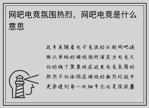 近年来,随着电子竞技的兴起,网吧逐渐从单...