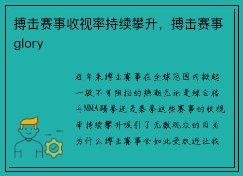 近年来,搏击赛事在全球范围内掀起一股不可...