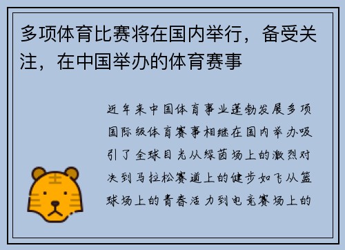 近年来,中国体育事业蓬勃发展,多项国际级...