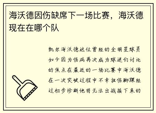 凯尔·海沃德,这位曾经的全明星球员,如今...