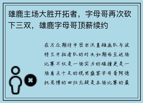 在万众期待中,密尔沃基雄鹿队与波特兰开拓...