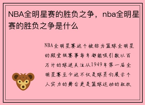 在NBA赛场上,每一场比赛都是一场激烈的...
