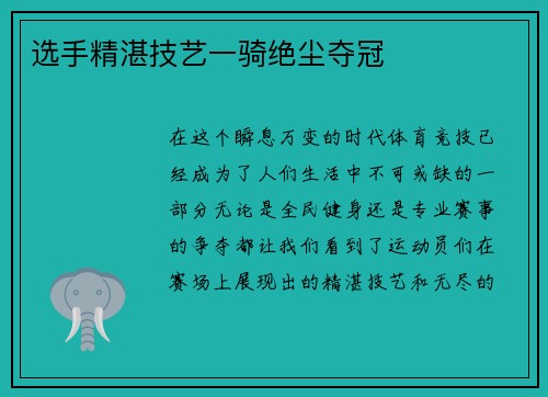 在这个瞬息万变的时代,体育竞技已经成为了...